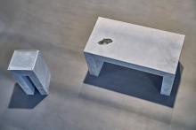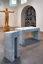 Stefan Haefner, altar and ambo gypsum, various materials, marienglass, 97.5 x 181 cm and 115.5 x 90,5x 50,5x 50.5 cm, 2015