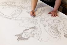 Markus Schmitz, suffering (Hiob), knife cut and engraving, 2014-2015