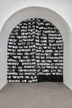 Julia Krause-Harder, textile work (quote: B. v. Clairvaux), Wool und Nettle, 430x450cm, 2015