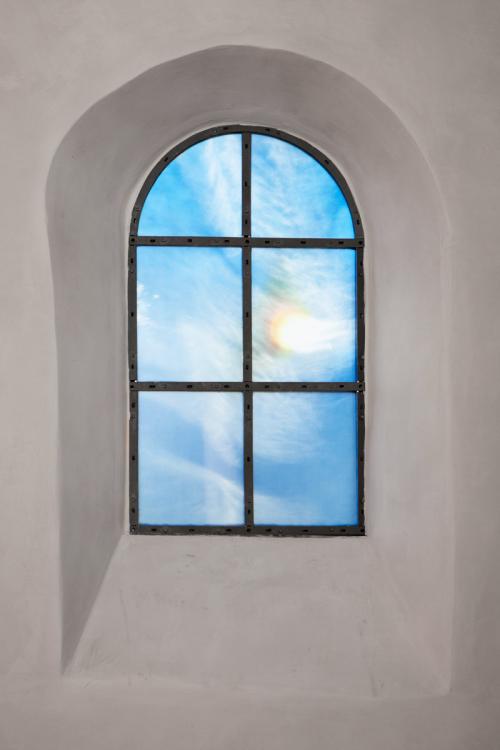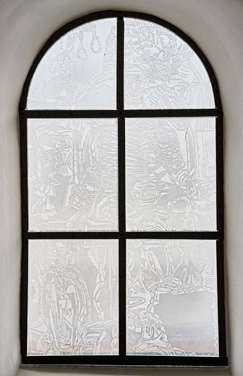 Julius Bockelt, Harmonie im Kosmos I (Halo), Glasmalerei und Photoresist, 2014