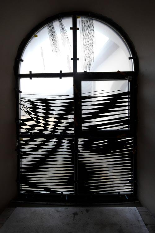 Die andere Fenster-Reihe beginnt mit Hiob. Hiob ist schlimm dran. Er leidet. Er verliert seine Wohnung und sein Geld. Seine Frau stirbt. Er ist selbst schwer krank. Doch Gott steht ihm bei. Darum gibt er nicht auf. Das Fenster neben ihm zeigt Abraham. Abraham muss umlernen. Gott ist anders als er denkt. Gott will kein Geld, keine toten Tiere und kein Opfer. Gott will keine Kirchen. Gott wünscht sich Menschen. Die sollen ihn liebhaben. Die sollen Frieden machen. Die sollen sich helfen. Das nächste Fenster zeigt: Alles kommt von Gott. In allem ist Gott. Gott ist für alle da. Der Künstler malte einen brennenden Dornbusch. Er ist ein altes Bild. Gott ist immer da – für dich. Das letzte Bild dieser Reihe hat einen Namen. Es heißt: Kosmos. Es zeigt in vielen Linien: Alles ist geregelt. Gott hat für alles gut gesorgt.